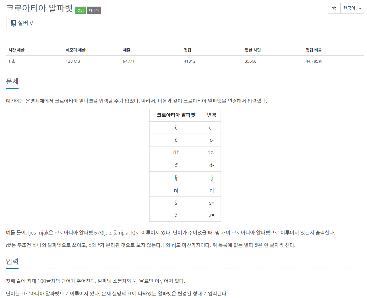 1. 배열에 문제에 주어진 크로아티아 알파벳을 담고