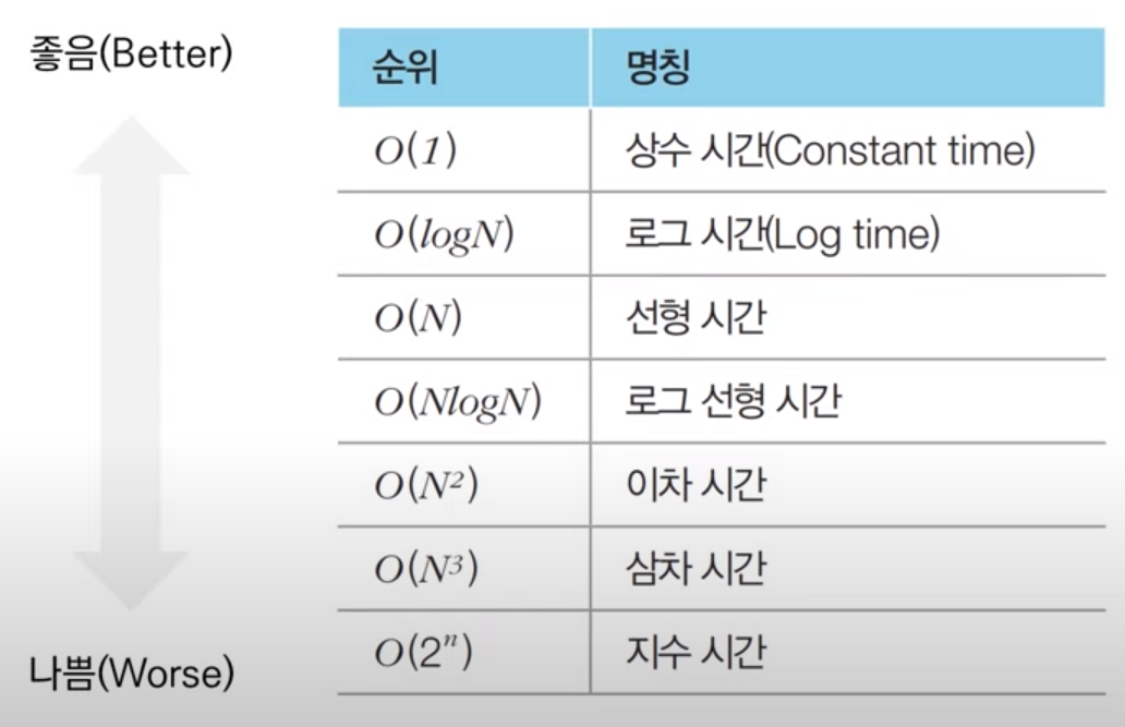- 동일한 기능을 수행하는 알고리즘? → 복잡도가 낮을수록 좋은 알고리즘