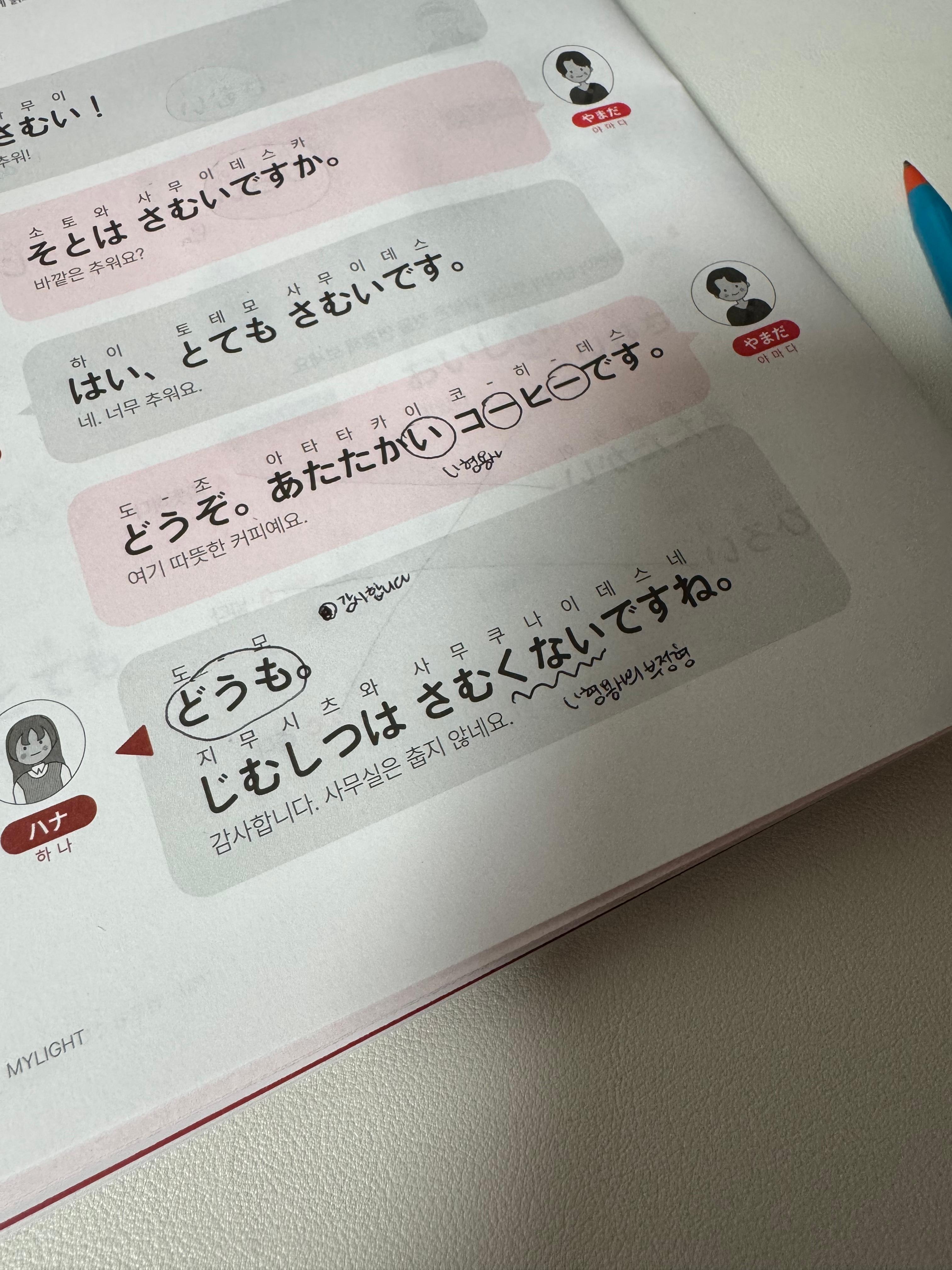 아직 さむい랑 あたたかい라는 단어가 너무 어색한데 몇번 대화를 읽어보니까 나름 익숙해진다 ㅎㅎ