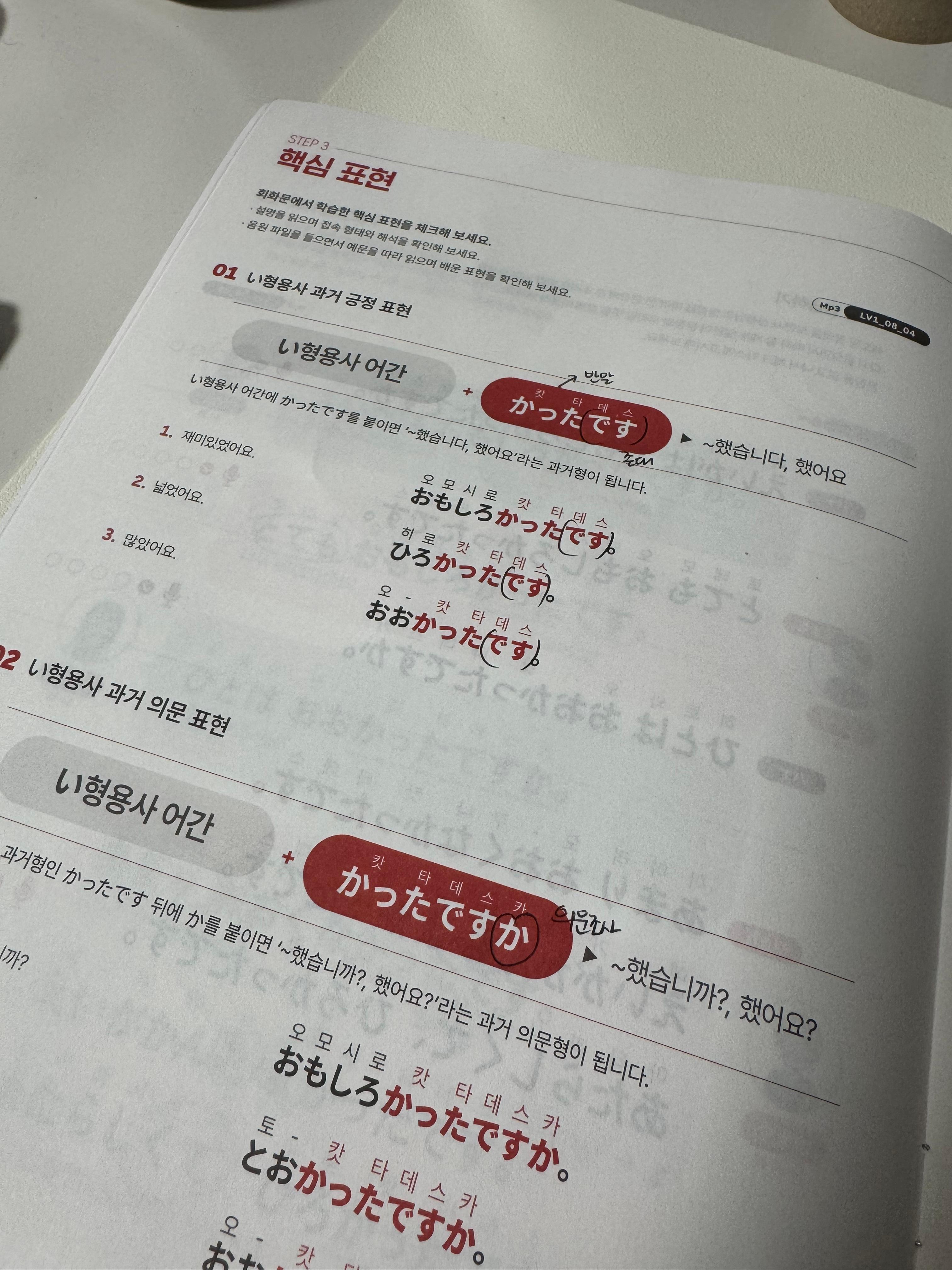 오늘은 い형용사의 과거긍정, 과거의문, 과거부정, 연결형에 대해 배웠다.