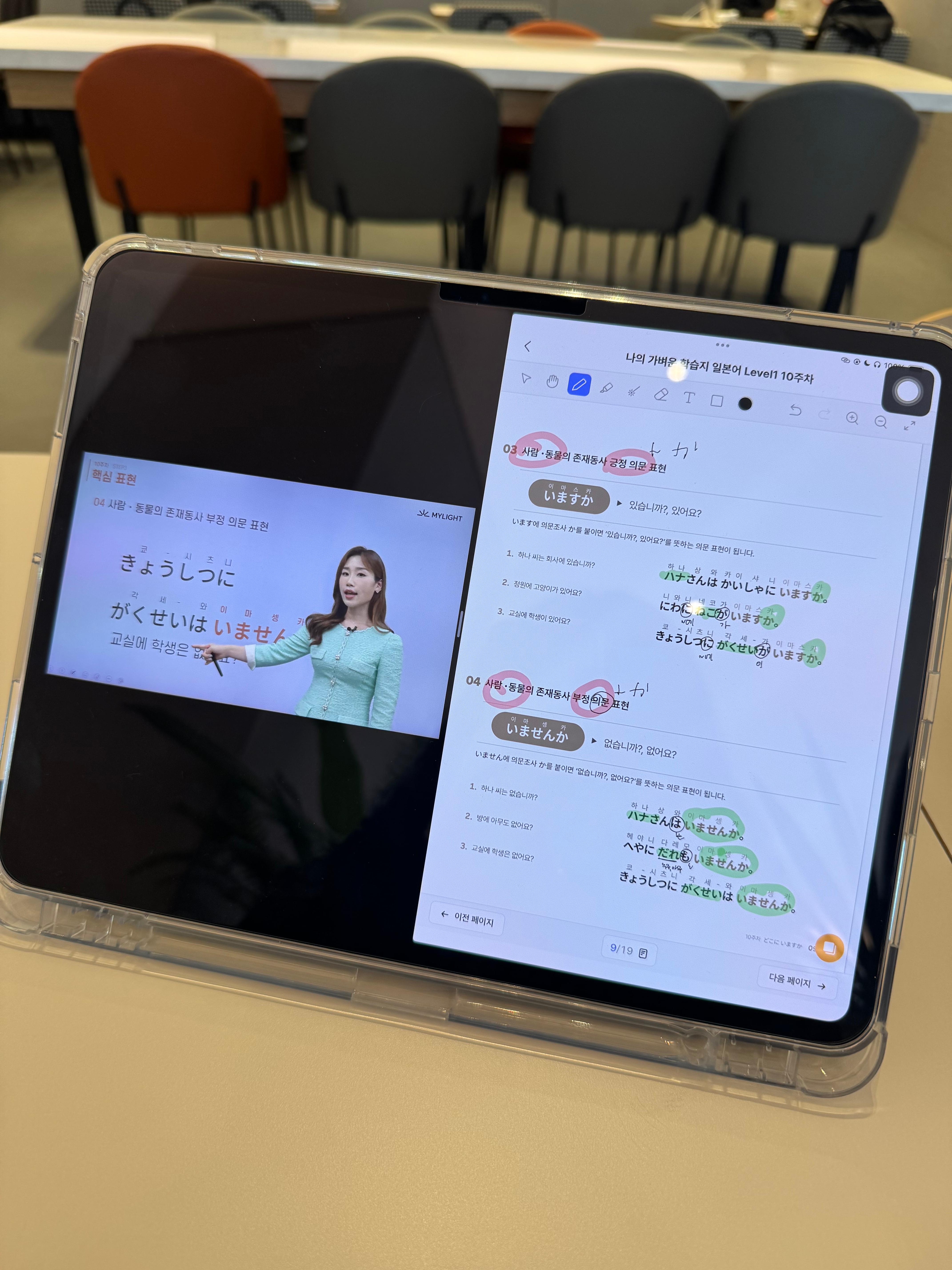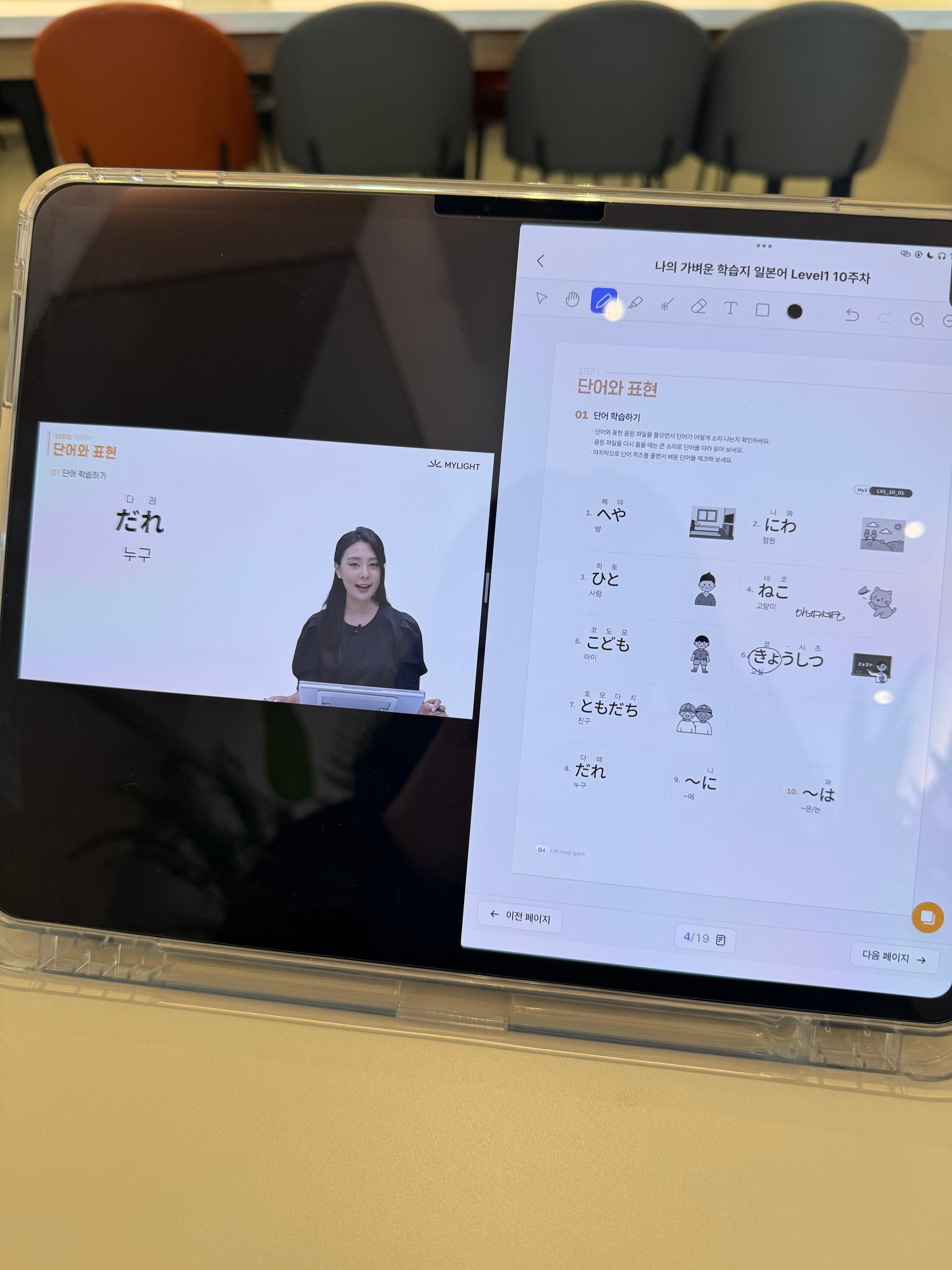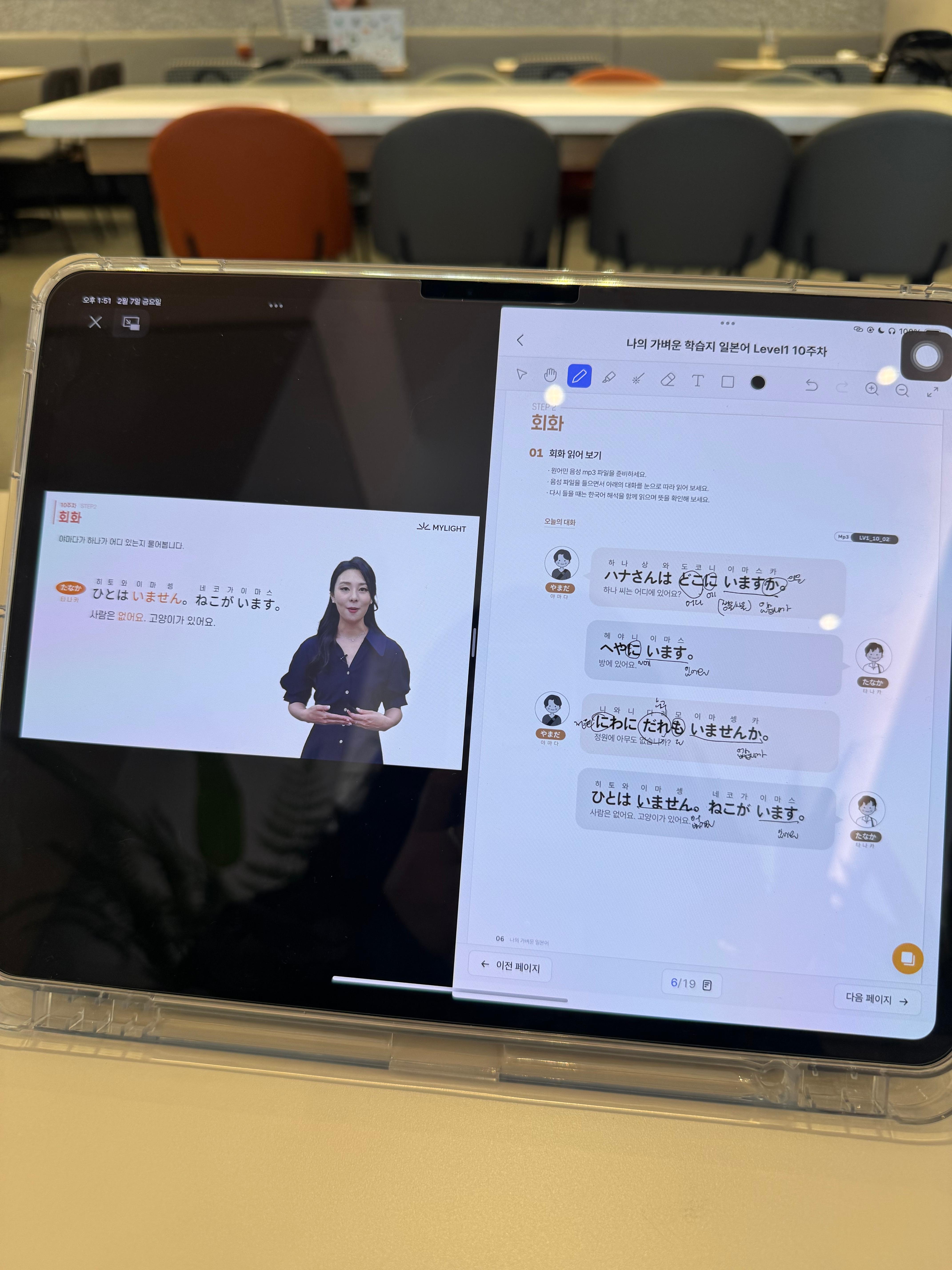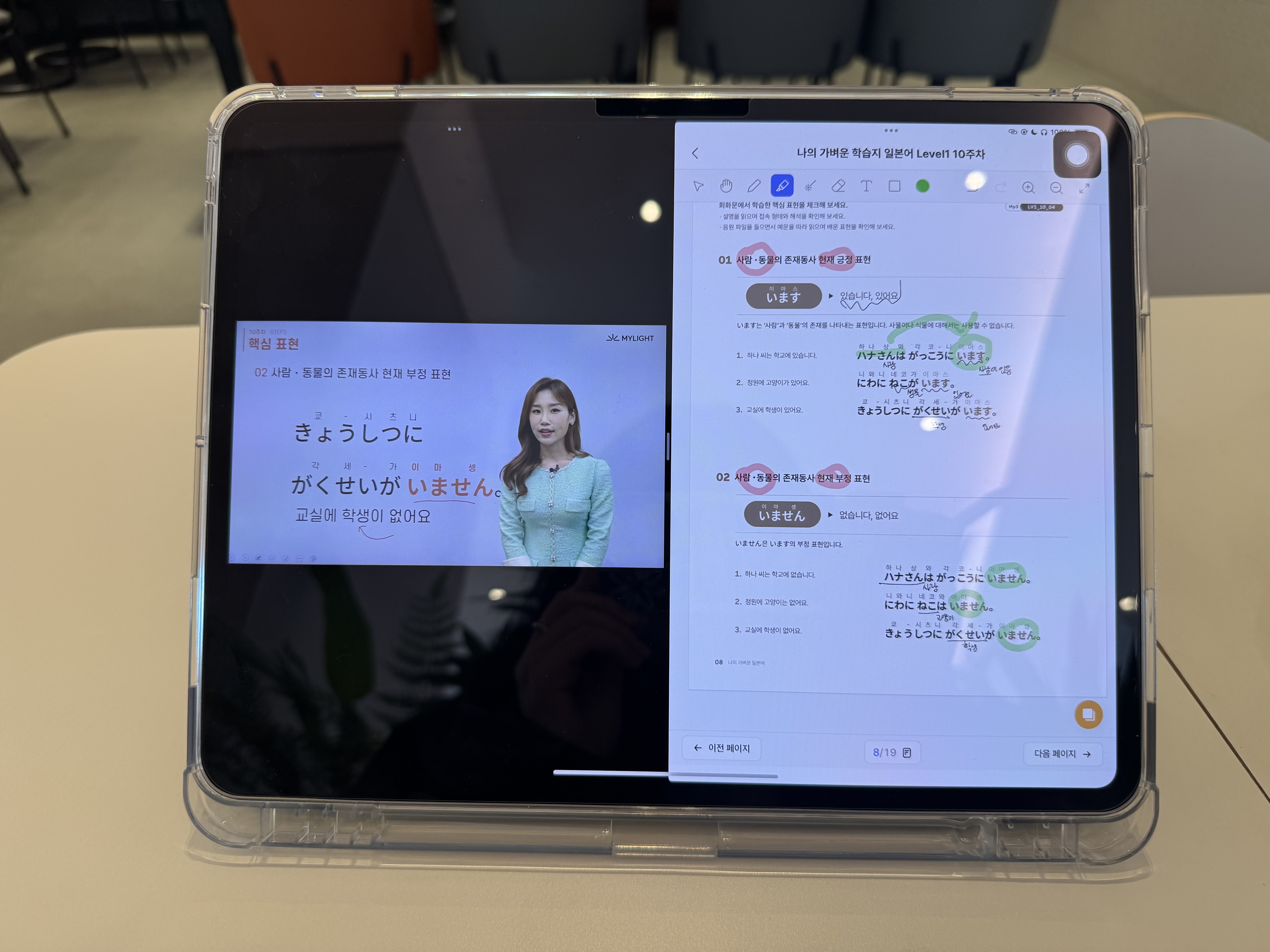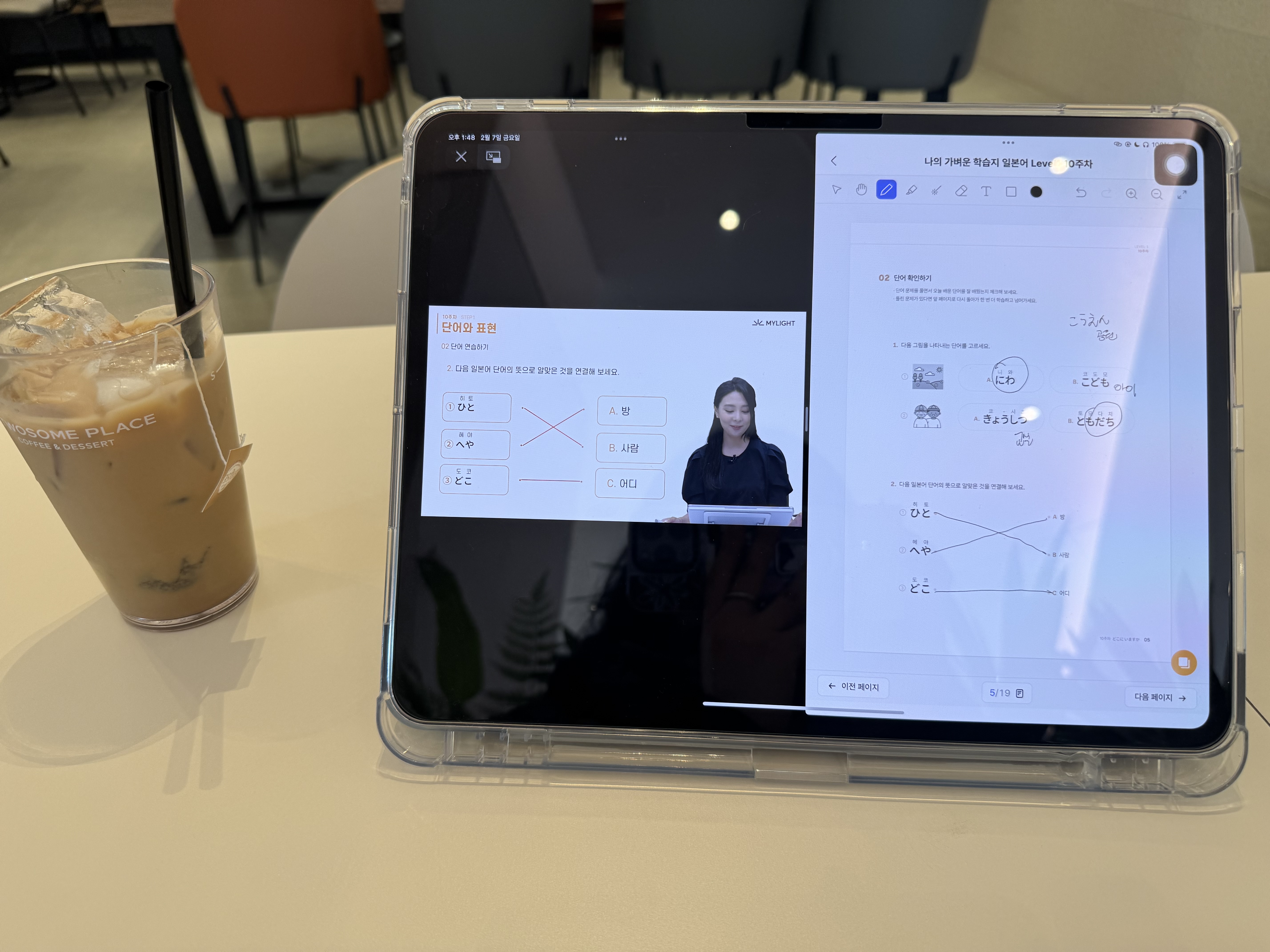 어플에서 강의를 띄워서 들으면 강의 화면이 좀 작아서 왼쪽은 사파리로 강의를 틀고 오른쪽은 마이라이트 어플로 디지털 학습지를 켜서 공부했다. 이렇게 들어도 워낙 화면이 커서 넘 좋은 것 같다 ㅎㅎ