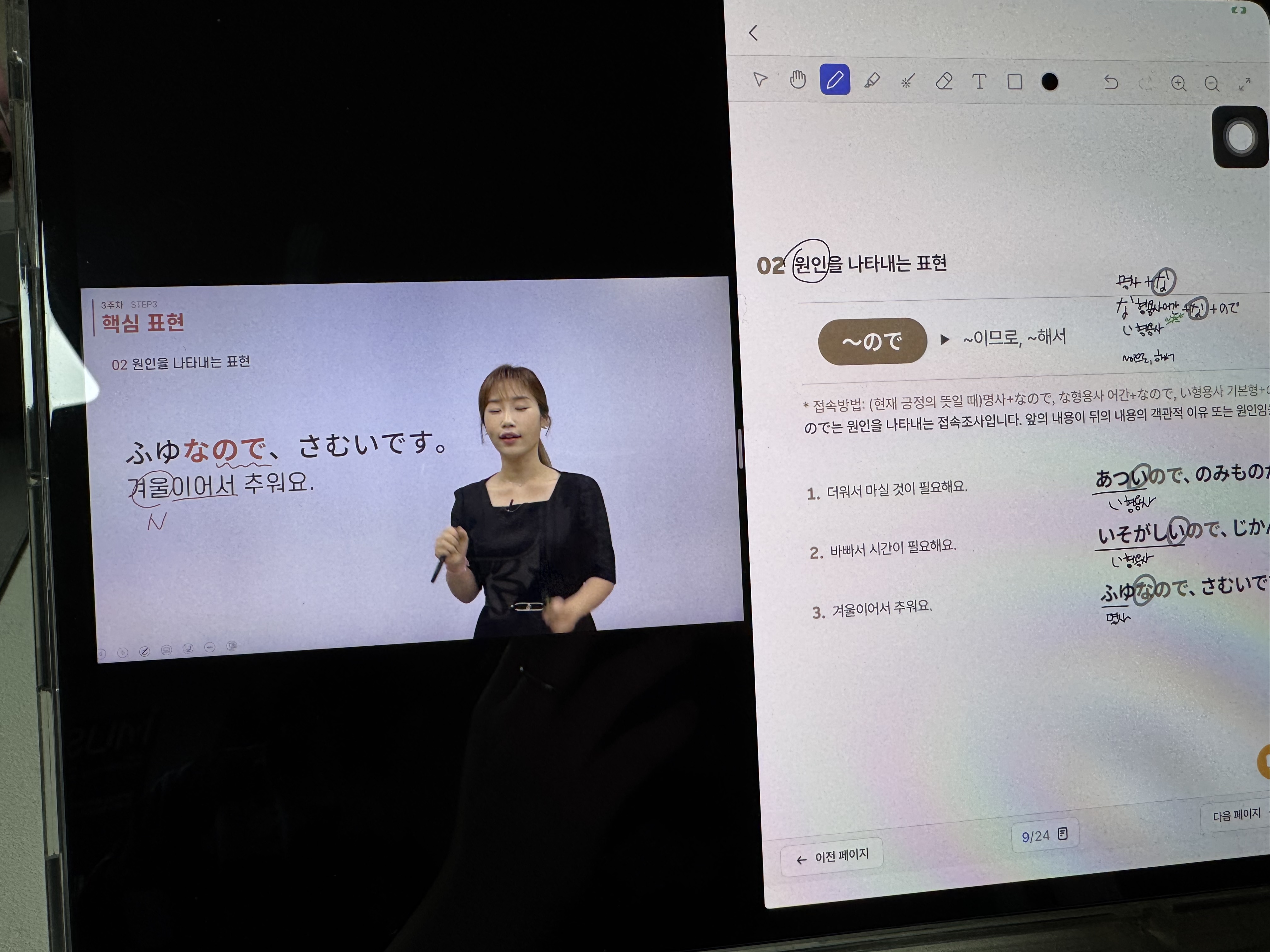 ~이므로, ~해서 등 원인, 이유 등을 말하고 싶을 때 ので라는 표현을 쓴다.