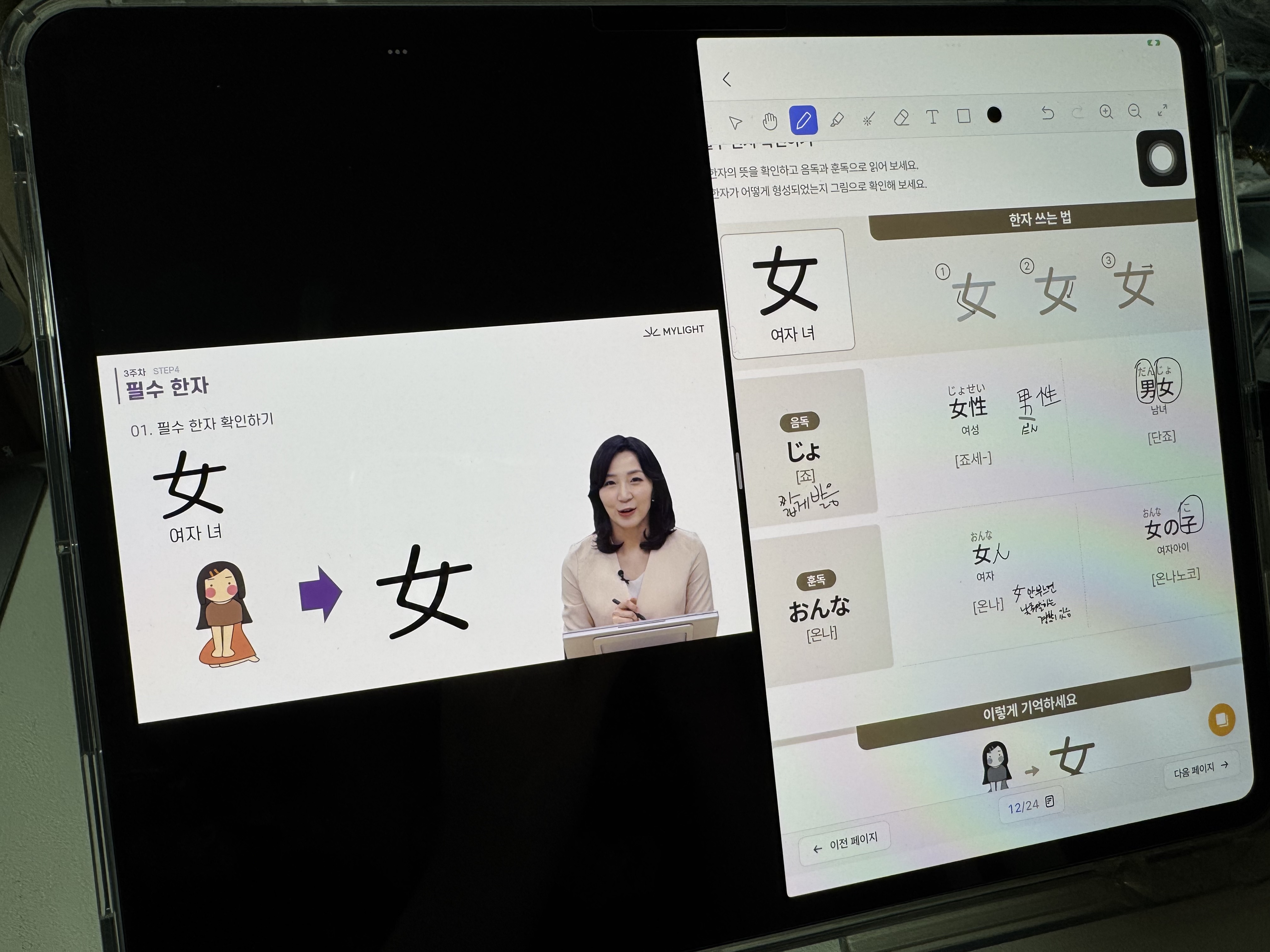 한자시간~ 오늘은 여자 녀에 대해 배웠다.